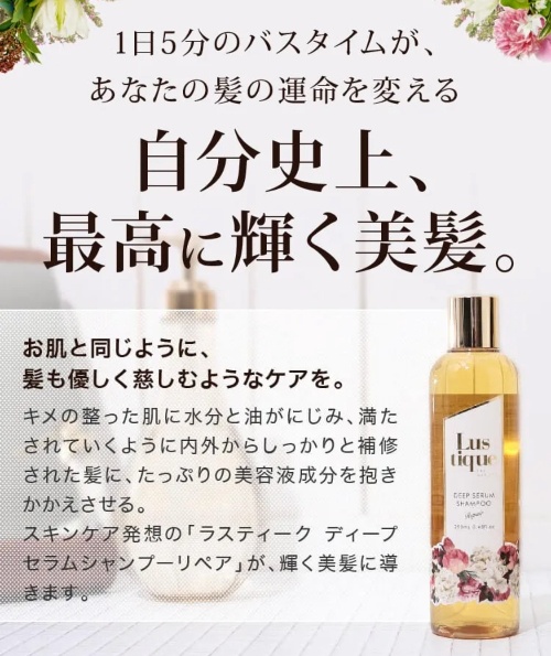 いつまでもツヤのある潤いに満ち溢れた髪の毛を目指すなら、口コミ評判が良いラスティークを使ってみてくださいね。