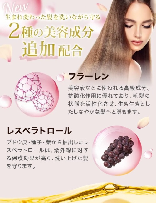 他にも、リッチなセラミド成分やリピジュア、加水分解コンキオリンなどなど、他のシャンプーには入っていないような珍しい豪華な成分がたっぷりと配合されています。