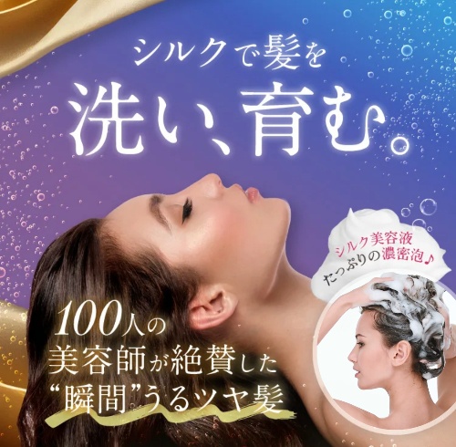 THE SILK シャンプーには、従来のシャンプーにはなかなか含まれていない豪華なシルク成分を配合!