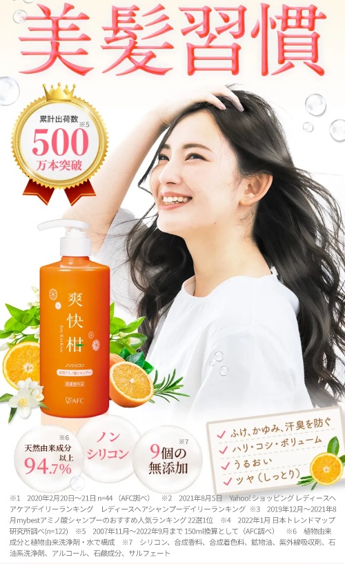 しっかりと頭皮のケアについて考えるならば、とにかくシャンプーの優しさにこだわるべきです。爽快柑には、アルコールやサルフェートなどの負担になり得る成分も入っていません。成分の多くは水・天然由来成分になっているので、 デリケートな肌質の方も使いやすいでしょう。