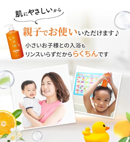 小さなお子さんとも一緒に使えるほどの優しさが魅力的な爽快柑。年齢はもちろん、性別も問わずに使えるので、頭皮ケアをお考えのメンズにもおすすめしたいシャンプーです。